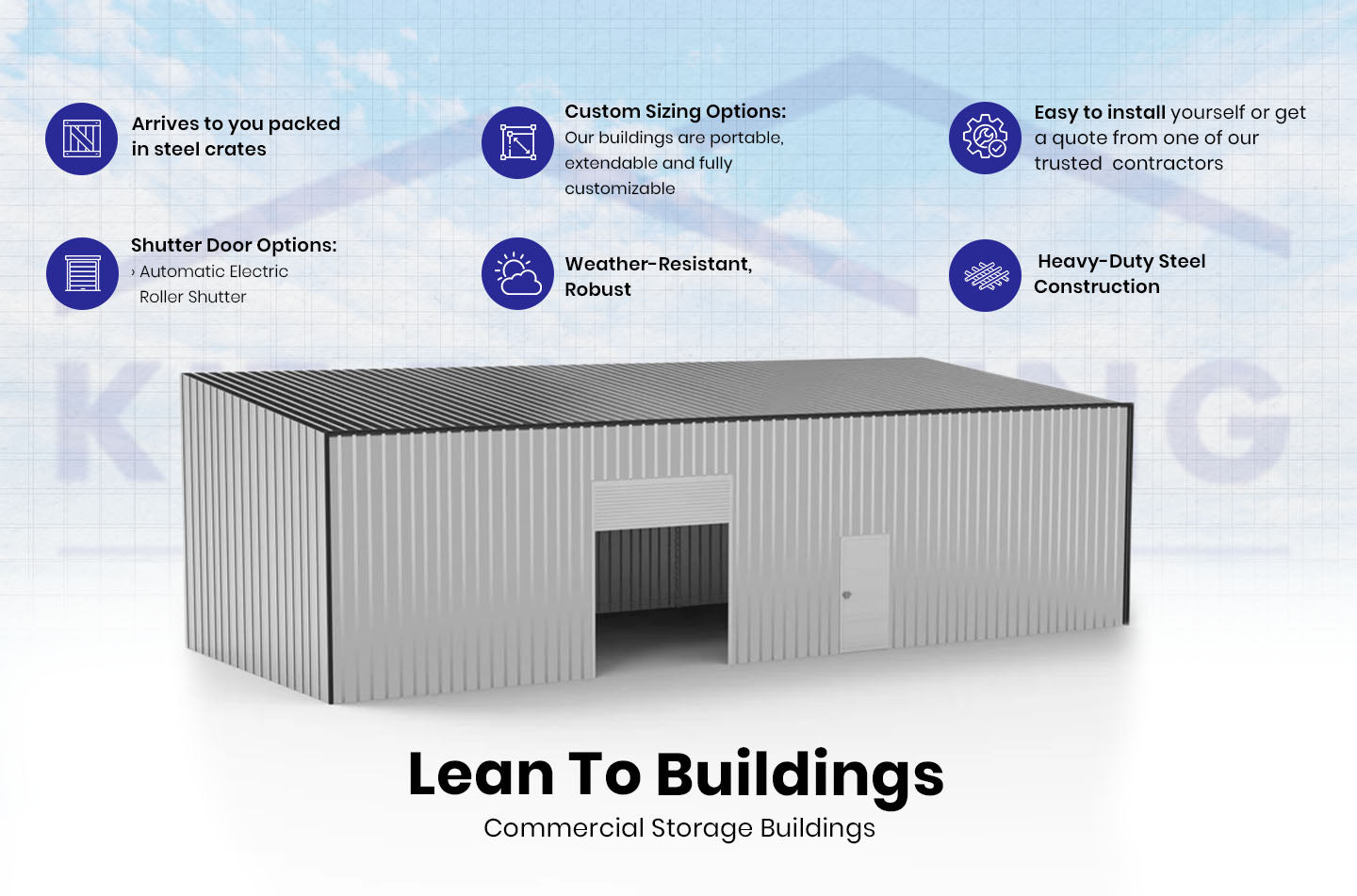 في Kit Buildings، نقدم مبانٍ مائلة عالية الجودة مصممة لـ تخزين فعال وتوسيع مساحة العمل. سواء كنت بحاجة إلى مأوى مائل، مأوى مائل، أو مأوى تخزين مائل، توفر ملاجئنا المعدنية المائلة حلاً قويًا ومقاومًا للطقس مصممًا ليدوم.